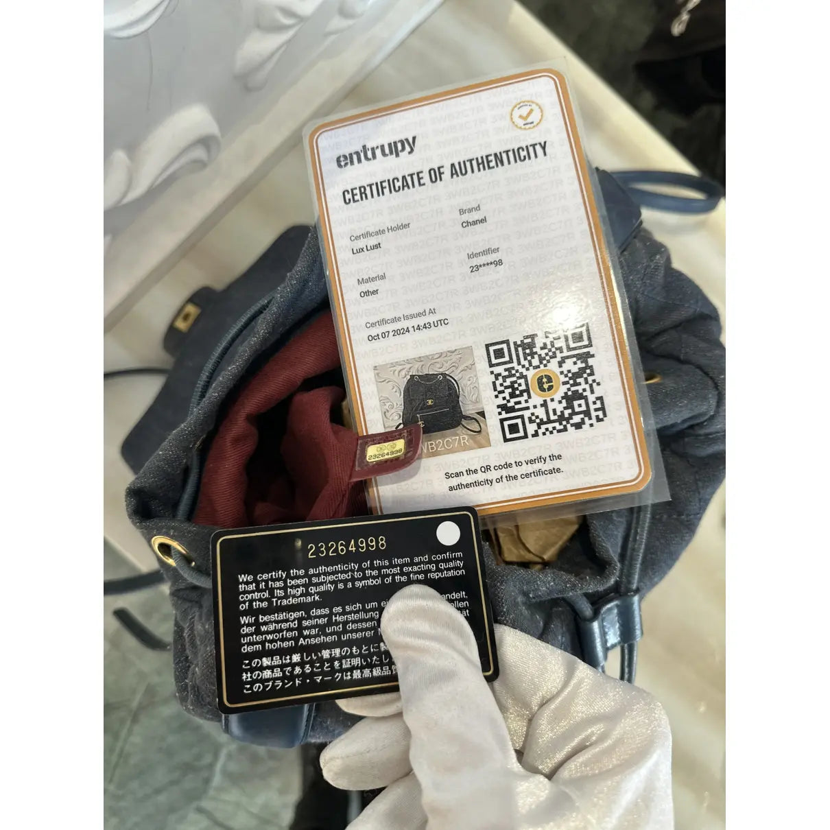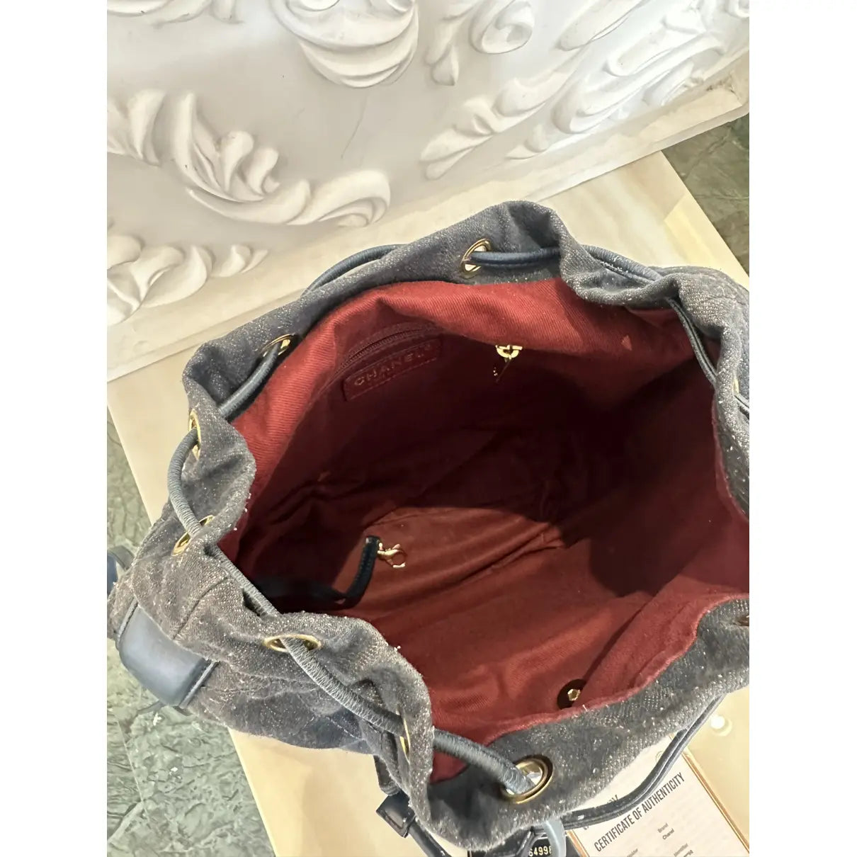 Beautiful and rare Chanel Timeless backpack, designed from diamond-quilted washed denim in blue. It offers plenty of space for your weekend essentials, plus a tablet or notebook, and arrives in good, pre-loved condition with some normal signs of wear such as scratches on leather ✨From the 2016 Collection by Karl Lagerfeld • Blue Canvas • Interlocking CC Logo • Gold-Tone Hardware • Chain-Link Handle & Dual Shoulder Straps • Leather Trim Embellishment & Single Exterior Pocket • Twill Lining & Single Interior Pocket • Turn-Lock Closure at Front ✨The little leather pocket attached to the front is featured with a golden Chanel sign for the Zipper and can keep your necessities at first hand . This comfy and super stylish bag will accompany you wherever you go!