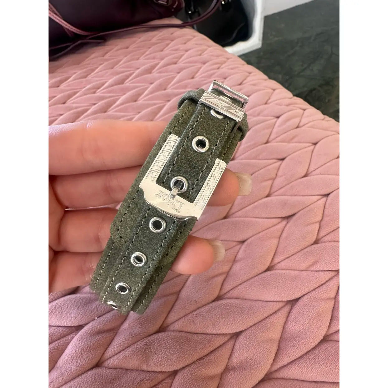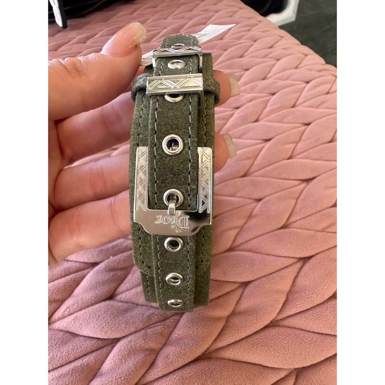 Rare Dior by Galliano Y2K suede leather khaki choker necklace with silver tone logo details In pristine brand new condition