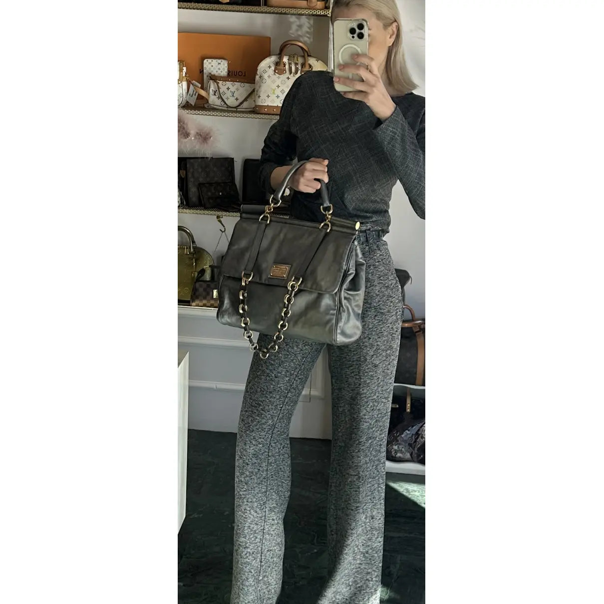 Dolce & Gabbana maxi Sicily bag in metallic grey colour with plastic link chain detail, gold-tone hardware and signature leopard lining ✨can be worn as a top handle , shoulder or crossbody bag ✨ In very good condition as shown in photos ✨comes with dustbag & entrupy certificate of authenticity ✨current retail price for a maxi Sicily bag is 2595$