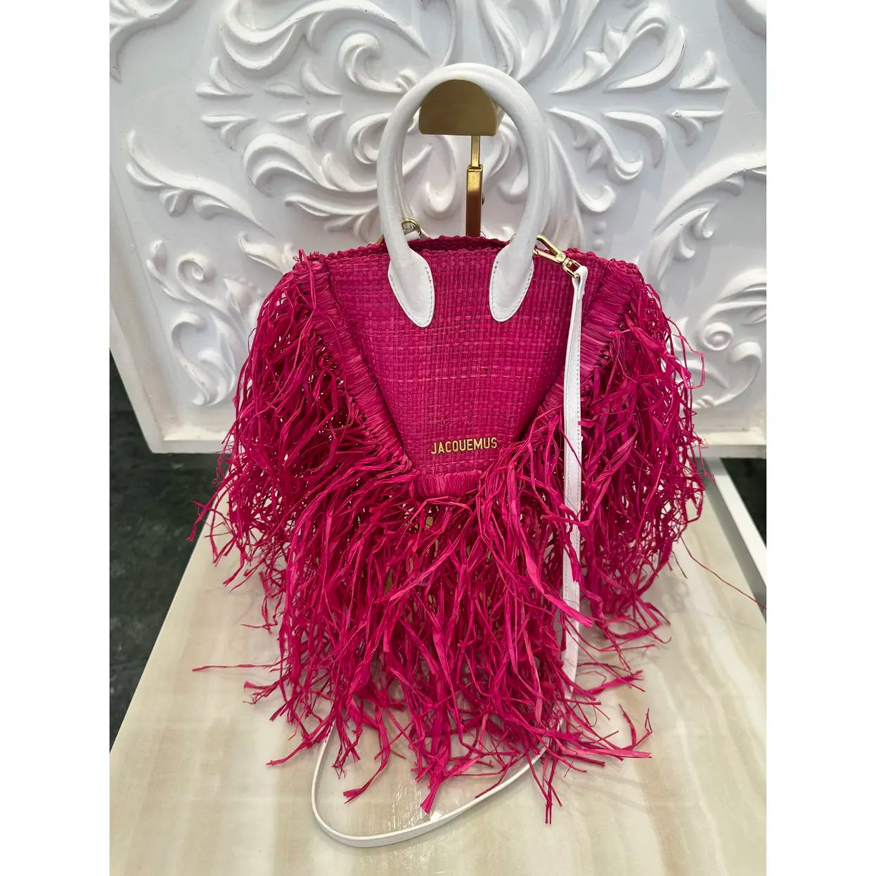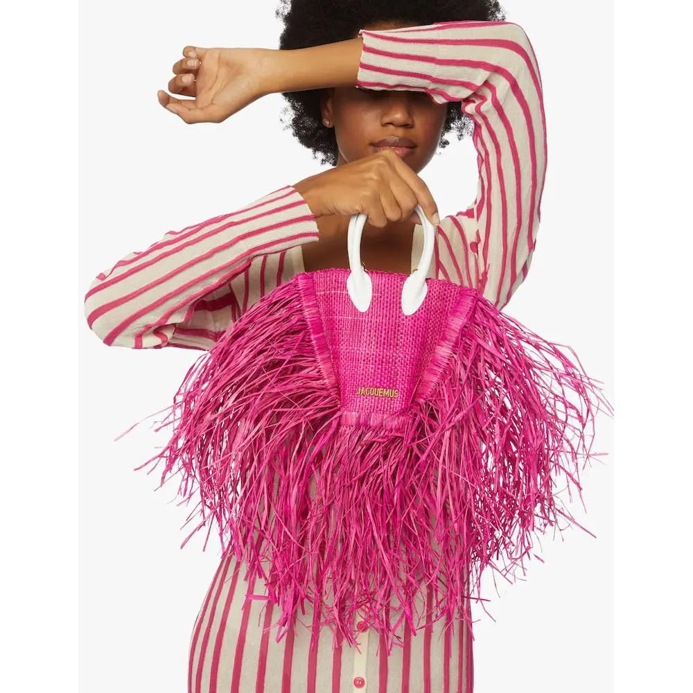 Jacquemus Pink Le Petit Baci Fringed Straw Raffia mini Crossbody