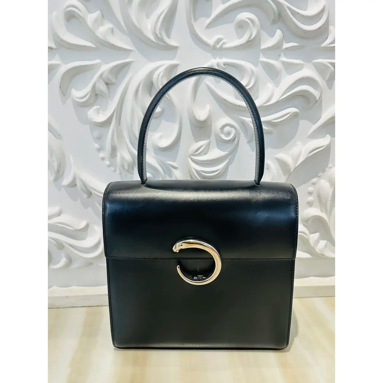Rare Cartier Panthère C de Cartier small model top handle bag in black leather with a silver-finish clasp ✨no inclusions ✨in very good condition for a vintage 90s item - a small scratch at the top near handle and another one at the back both shown in photos - the bag is really elegant and beautiful with hard to notice signs of wear ✨approximate dimensions 21x20x7 cm ✨current retail price is over 3000€ !