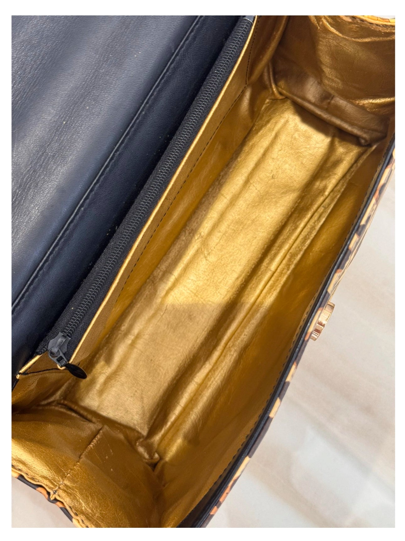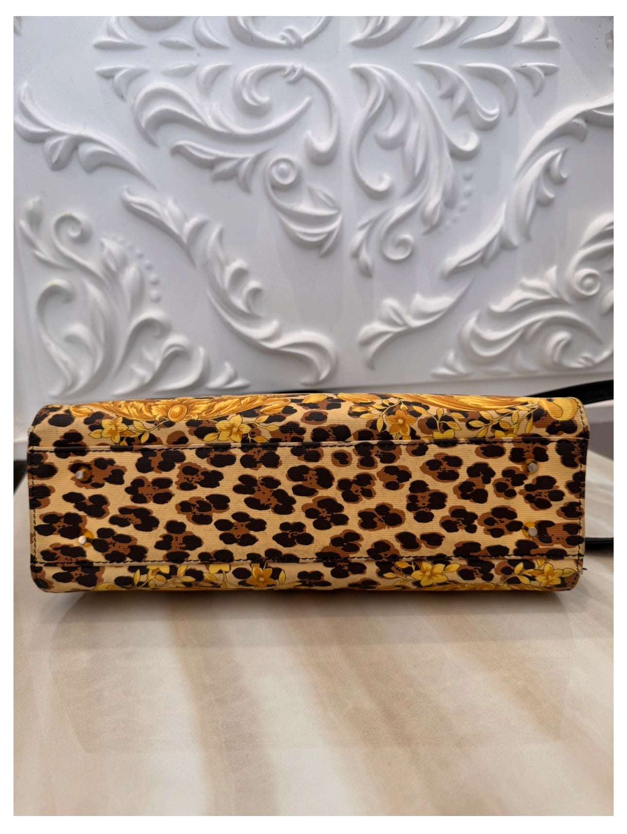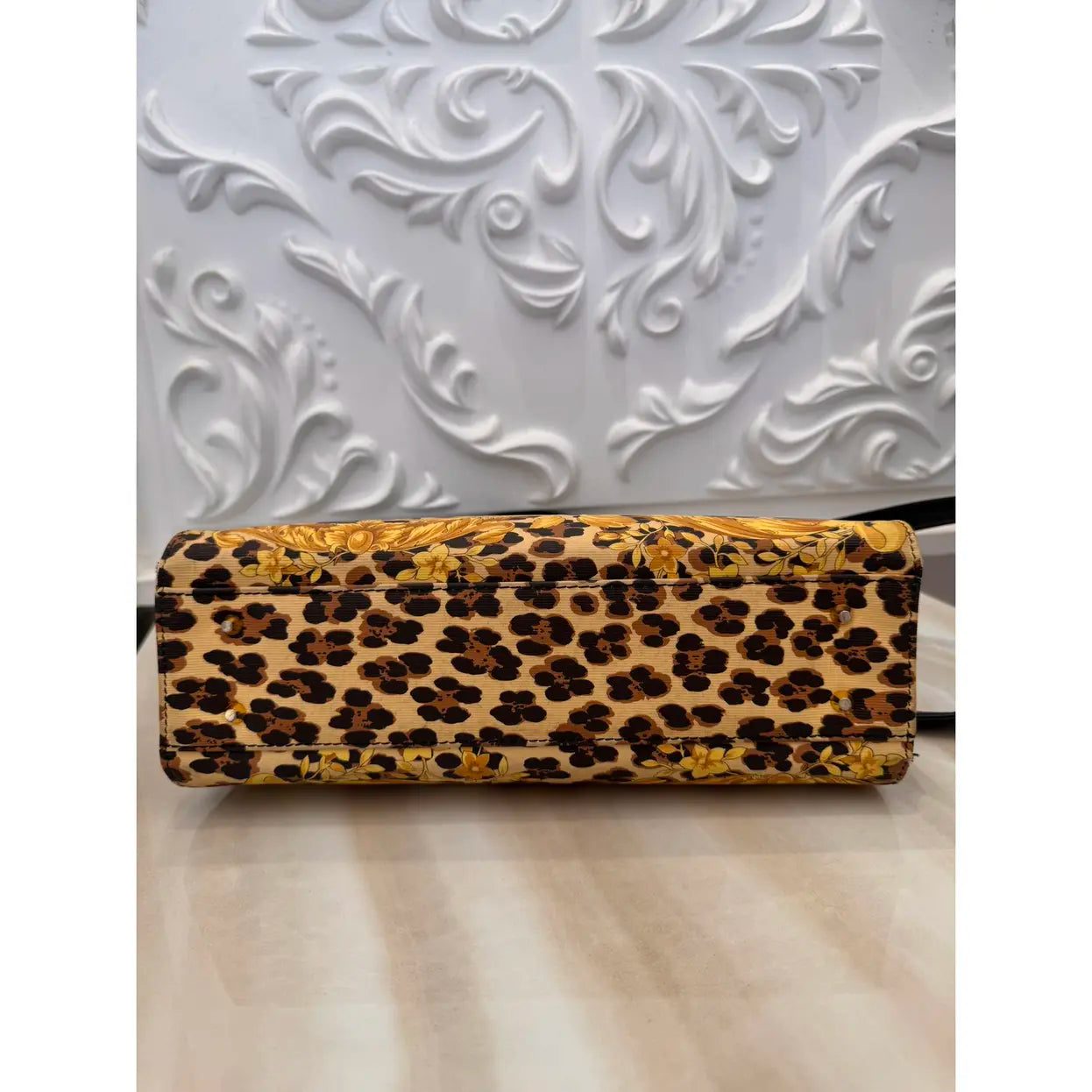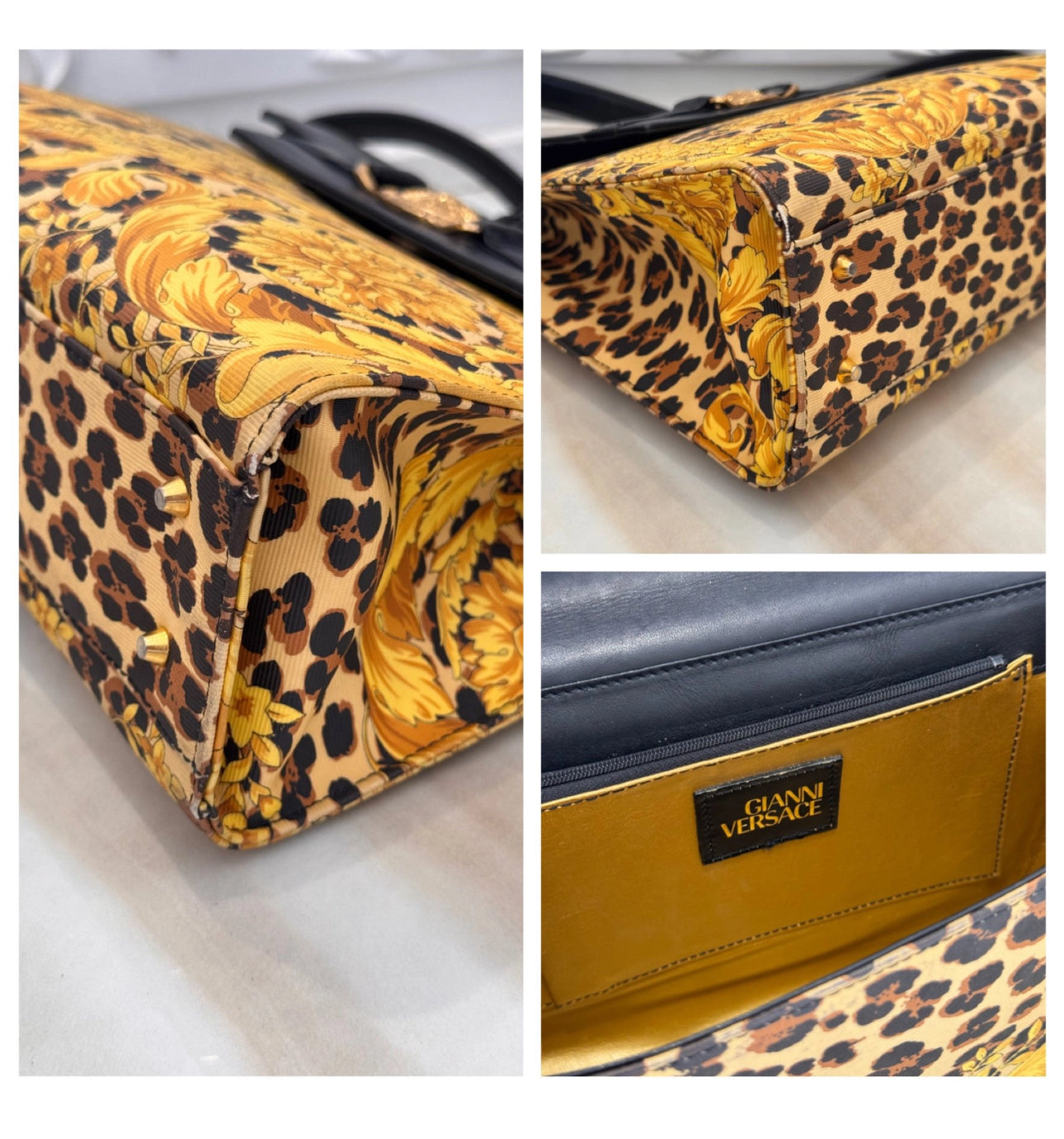 - This beautiful vintage handbag is made of a leopard print combined with an art of yellow baroque patterned canvas and leather handles ! can't get any more Versace than that !!